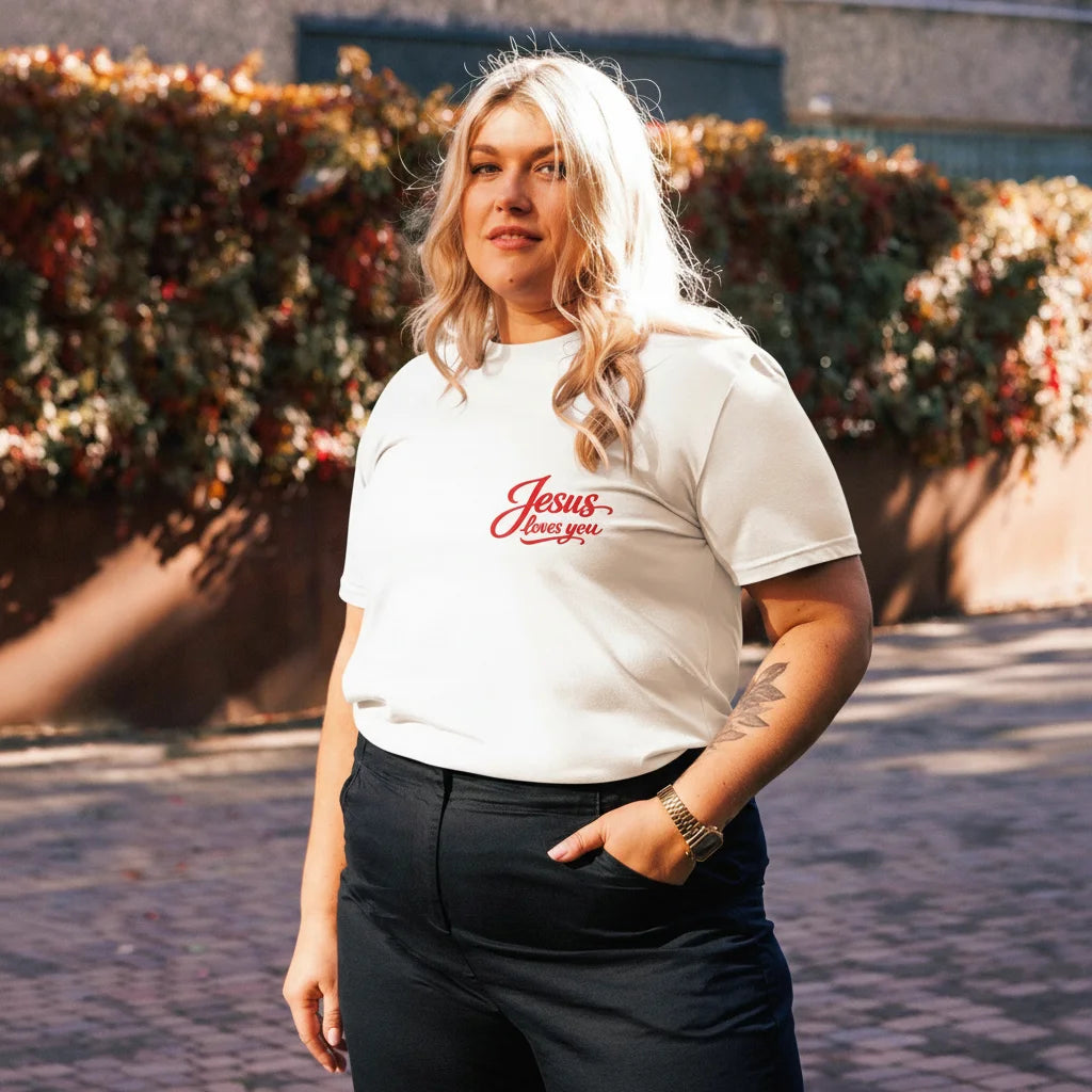 This isn't just a t-shirt; it's a daily dose of comfort and a powerful statement of faith. Crafted from buttery-soft organic cotton, it feels like a warm hug while you effortlessly spread a message of unconditional love. It's your favorite tee, elevated with purpose and a whole lot of heart, designed to make you feel good inside and out.